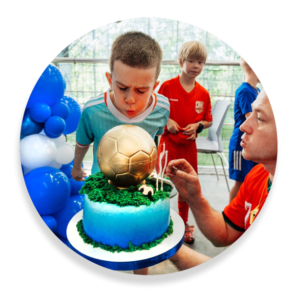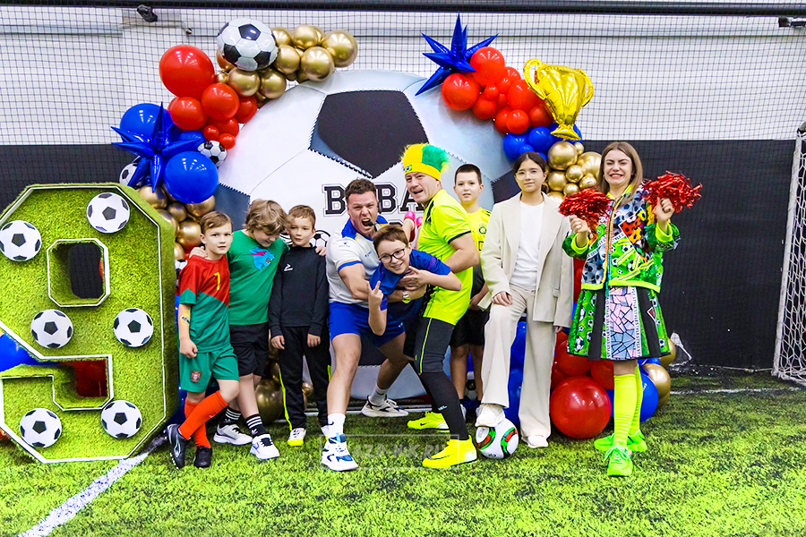 Спортивная программа на любой возраст с полным погружением в атмосферу футбольного матча. Для всех фанатов и просто болельщиков футбола мы сгенерировали футбольную вечеринку для детского праздника с большим количеством уникальных игр и соревнований. Это не просто футбольная тренировка, это интерактивная программа с челленджами и викторинами в футбольном стиле. А для всех именинников мы подготовили подарок, а так же награждение медалью и кубком чемпиона. Участников ждут яркие, незабываемые эмоции, мастер-класс по росписи футбольных мячей и профессиональные футбольные ведущие.
