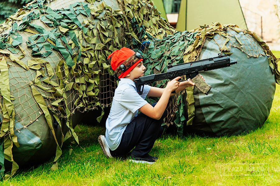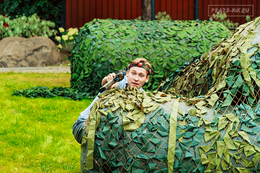 Вечеринка в стиле NERF — бой на выживание! Так же , как и Фортнайт — хит сезона для мальчишек и девчонок. Захватить базу противника не так уж и легко. Сначала нужно разминировать локацию и разбить антену-передатчик, далее пройти дымовую завесу и лазерные лучи. Потом проще — необходимо захватывать рубежи и перемещаться на следующий уровень. В финале участников ждет смена бластеров и самая сложная подвижная мишень. В программе тематический реквизит, бластеры для участников, патроны, ящик взрывчатки, жизненные ресурсы, коробки — укрытия, защитные маски.